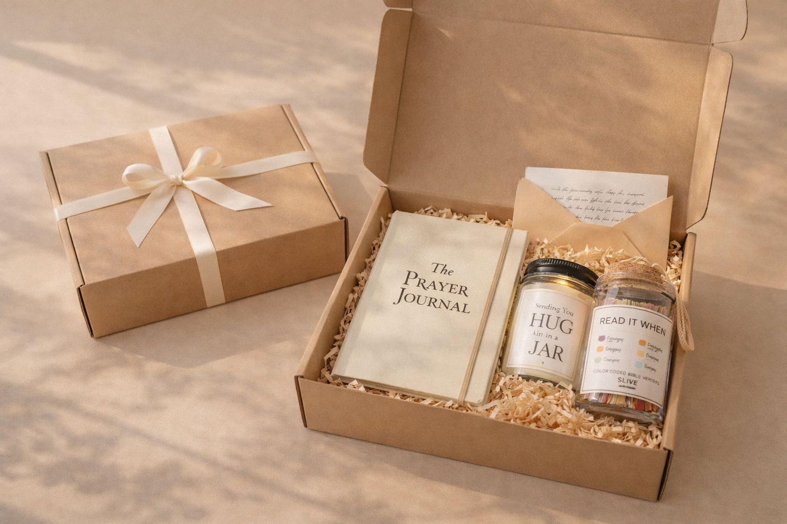 Inside, they’ll find a thoughtfully curated collection that includes a guided devotional journal, a "Hug in a Jar" candle for quiet moments, "Read Me When" scripture cards for reflection, and a handcrafted letter of encouragement to remind them they are not alone.