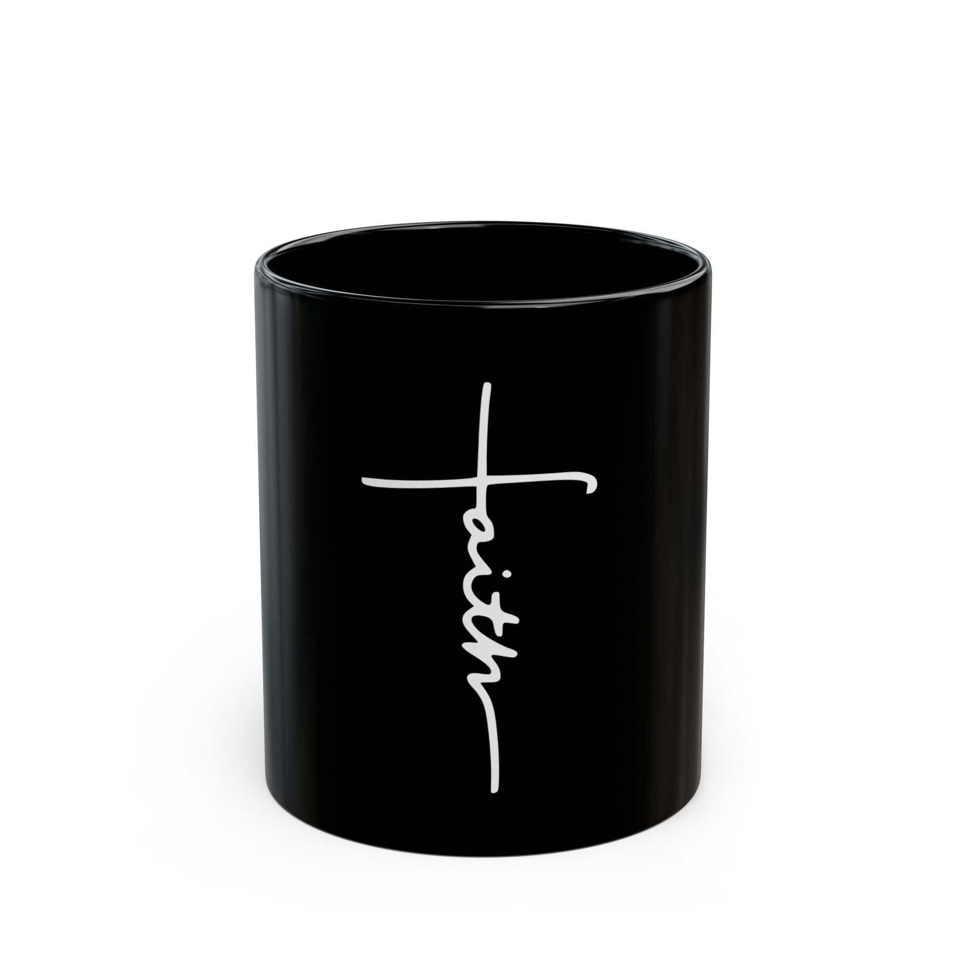Faith Script Ceramic Mug | Black Glossy Christian Coffee Mug (11oz / 15oz)