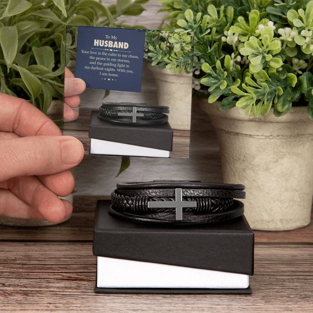 This Leather Men's Cross Bracelet is the perfect keepsake for someone special in your life. Handcrafted with care, this piece features braided vegan leather and a sleek stainless steel cross. This would make an ideal gift for your beloved partner, family members, or dear friends on special occasions like anniversaries, birthdays, or any event where you want to express your love and appreciation in an unforgettable way.