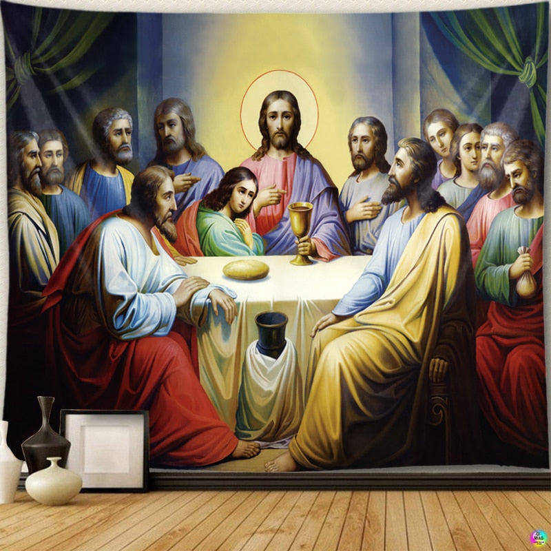 Introducing our Last Supper Tapestry - a breathtaking and spiritual centerpiece that adds a touch of reverence to your living space. Crafted with meticulous detail, this tapestry beautifully captures the iconic scene of the Last Supper.