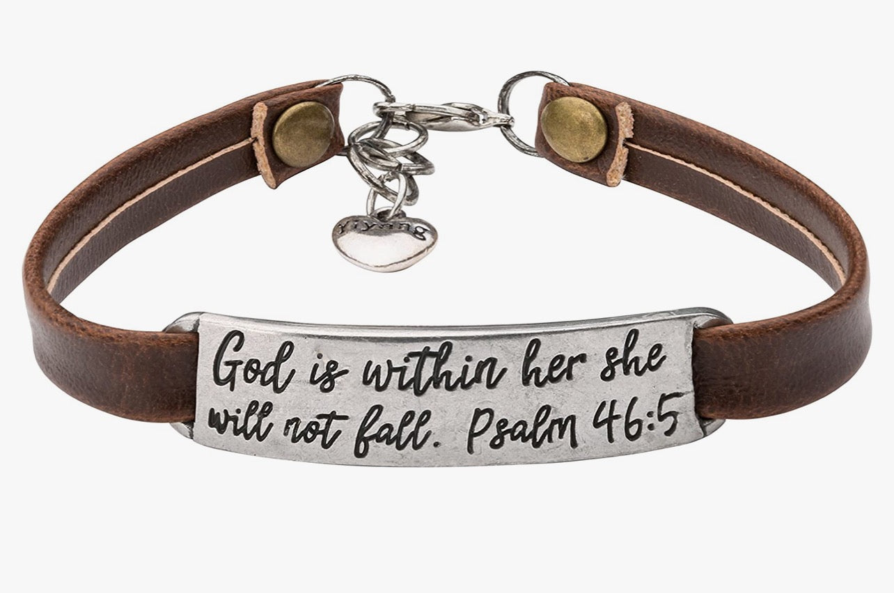 Embrace the reassurance of "God is with her, she will not fail" Leather Strap Bracelet, and carry the spirit of faith and strength with you throughout your day. Elevate your style with this meaningful and empowering bracelet, celebrating the divine assurance that lies within this inspiring scripture.