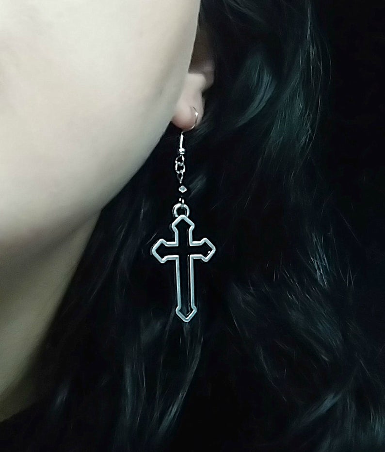 Introducing our Hollow Cross Christian Faith Earrings - a stunning and symbolic piece that celebrates your devotion to faith. Crafted with intricate detail, these earrings feature a beautiful hollow cross design, exuding elegance and spirituality.