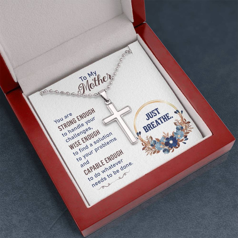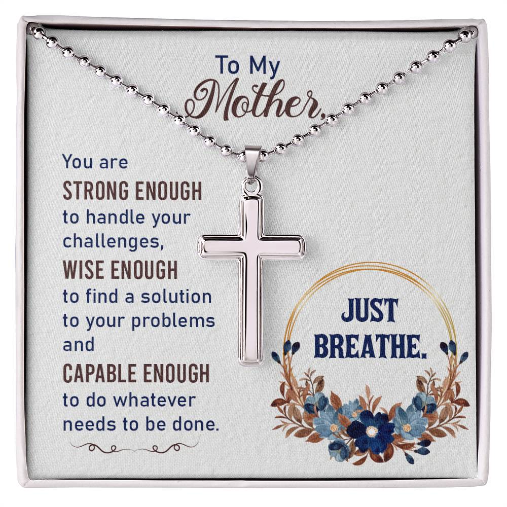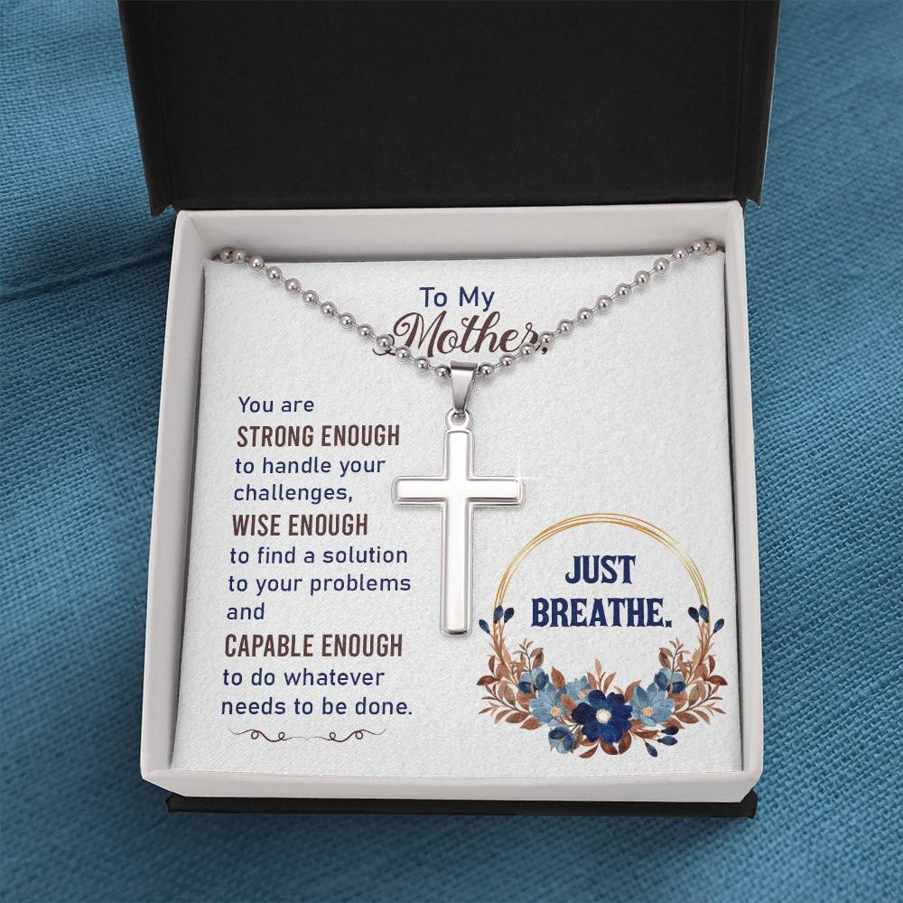 Mother's Day - Christian Cross Necklace - Just Breathe